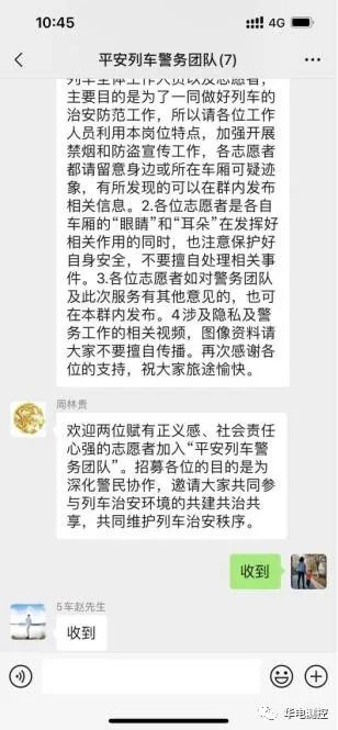 2022年10月14日,他踏上了開(kāi)往浙江的高鐵。因疫情高鐵人員安排緊張,高鐵上工作人員特向乘車(chē)旅客發(fā)出邀請,希望有正義感、社會(huì )責任心強的志愿者共同參與列車(chē)治安環(huán)境的共建共治共享,共同維護列車(chē)治安秩序。作為黨員的他第一時(shí)間響應號召,加入“平安列車(chē)警務(wù)團隊”,成為了一名行治安聯(lián)防隊員。列車(chē)行駛過(guò)程中,他同其他志愿者發(fā)揮著(zhù)“消息樹(shù)”的作用,實(shí)時(shí)將列車(chē)情況反饋給乘警。