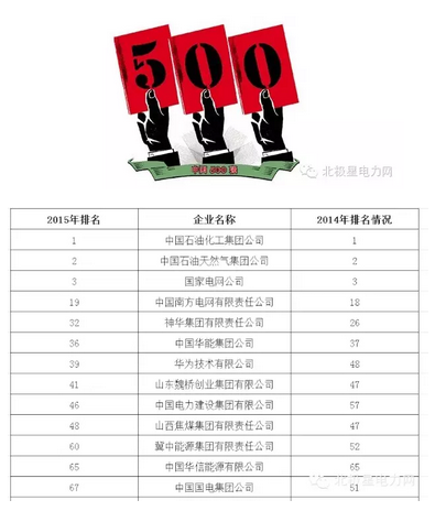 【榜單】2015中國企業(yè)500強:電力企業(yè)幾家上榜?