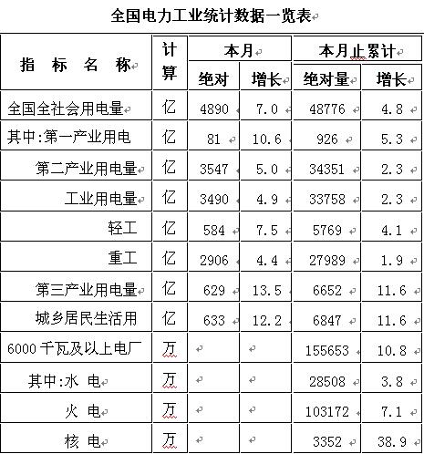 國家能源局發(fā)布10月份全社會(huì )用電量
