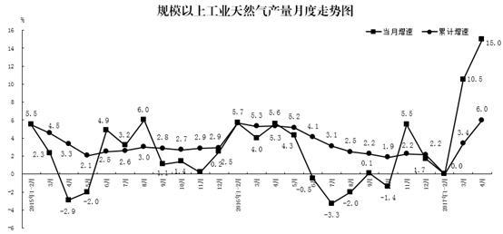 1-4月份,天然氣產(chǎn)量509.4億立方米,同比增長(cháng)6.0%。進(jìn)口2011萬(wàn)噸[4],增長(cháng)5.4%。