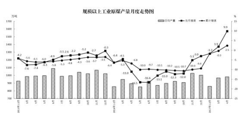 據國家統計局消息,統計局今日發(fā)布2017年4月份能源生產(chǎn)情況,數據顯示,規模以上工業(yè)原煤生產(chǎn)增速加快,價(jià)格有所回落;原油生產(chǎn)降幅收窄,原油加工量增速回落;天然氣生產(chǎn)快速增長(cháng);發(fā)電量增速放緩。