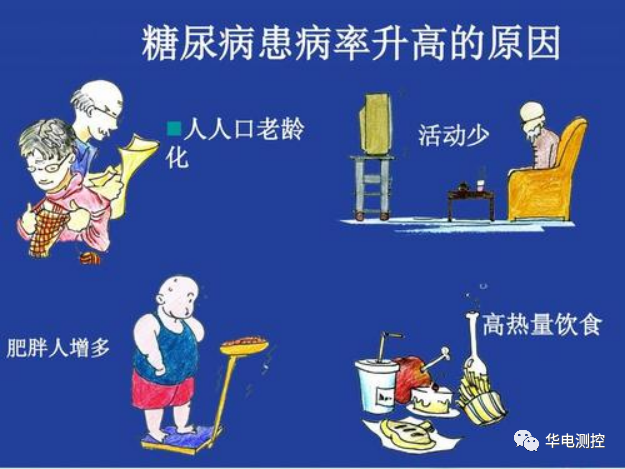 三是肥胖因素。目前認為肥胖是糖尿病的一個(gè)重要誘發(fā)因,約有60%-80%的成年糖尿病患者,在發(fā)病前均為肥胖者,肥胖的程度與糖尿病的發(fā)病率呈正比。有基礎研究材料表明:隨著(zhù)年齡增長(cháng),體力活動(dòng)逐漸減少時(shí),人體肌肉與脂肪的比例也在改變。自25歲至75歲,肌肉組織逐漸減少。