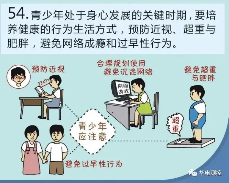 青少年是祖國的未來(lái),提高他們的健康素養,是實(shí)現健康中國戰略目標的關(guān)鍵?!吨袊窠】邓仞B—基本知識與技能》第二部分,關(guān)于“健康生活方式與行為”,其中第五十四條強調:“青少年處于身心發(fā)展的關(guān)鍵時(shí)期,要培養健康的行為生活方式,預防近視、超重與肥胖,避免網(wǎng)絡(luò )成癮和過(guò)早性行為。”